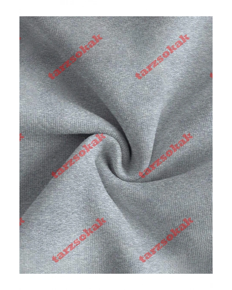 Siyah Yakasız Tüy Baskılı Unisex Sweatshirt