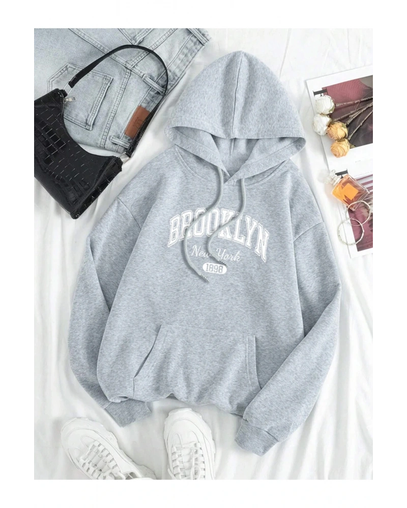 Los Angeles baskılı Üç İplik ünisex oversize Sweatshirt Füme