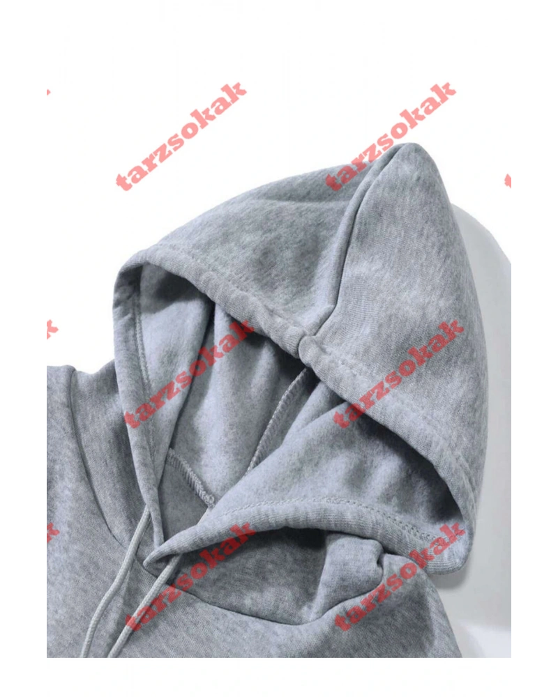 Yasolin----Unisex Oversize Kapüşonlu Kanguru Cepli Goodzila Baskılı Gri