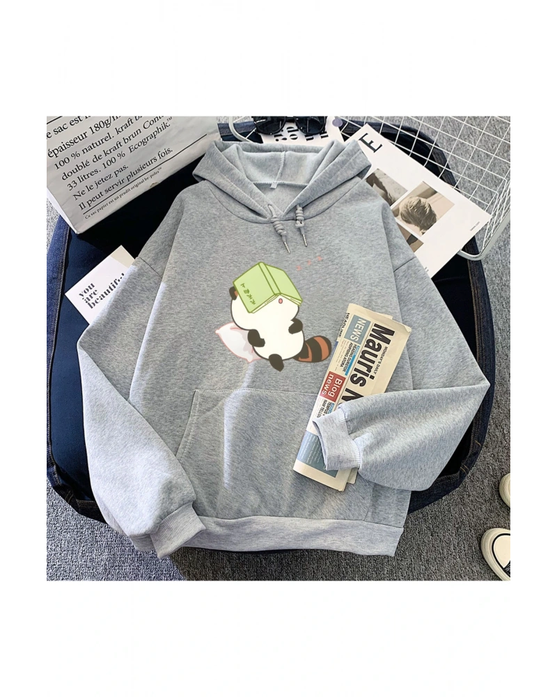 Gri Rakun Çalışması Uyku Grafik Kawaii KarikatürKız Rahat