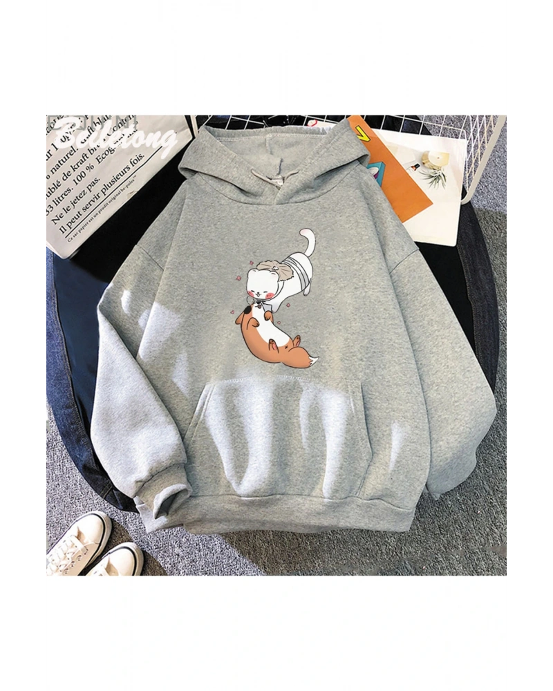 Gri TGCF Tilki ve Gelincik Hoodies Tian Guan Ci Fu Kawaii baskılı Harajuku Est