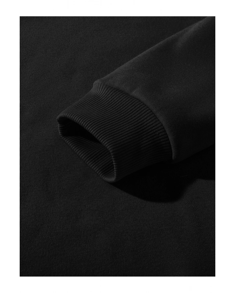 Siyah Yakasız Tüy Baskılı Unisex Sweatshirt