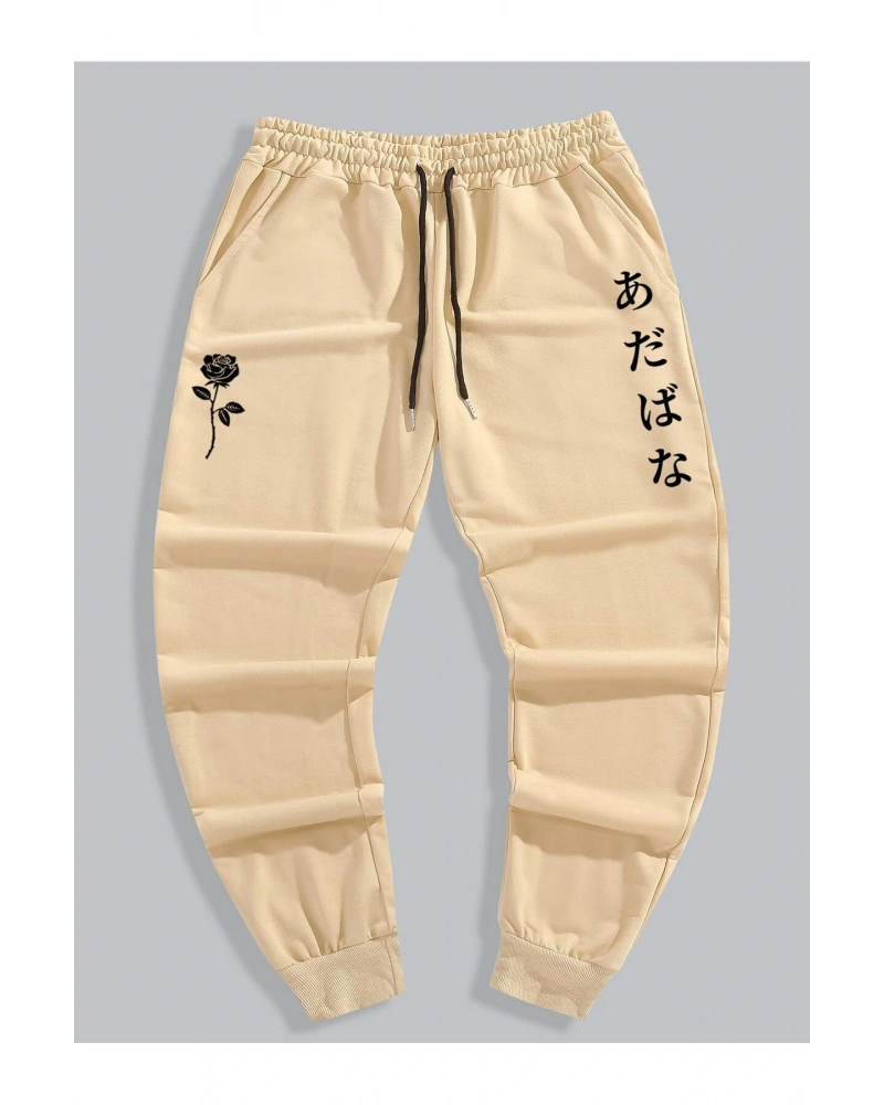 Guys Japanese Letter & Floral Print Drawstring Waist Eşofman Altı
