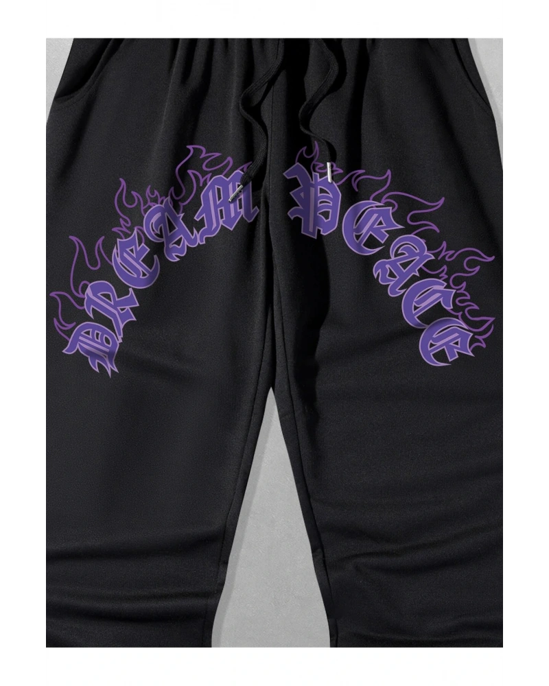 Guys Letter Fire Graphic Drawstring Eşofman Altı