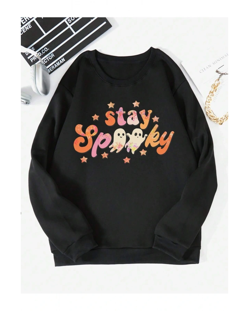 Halloween Letter Graphic Lined Sweatshirt Siyah