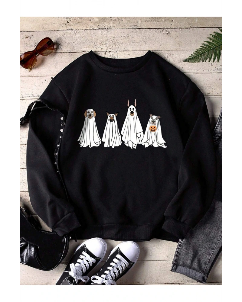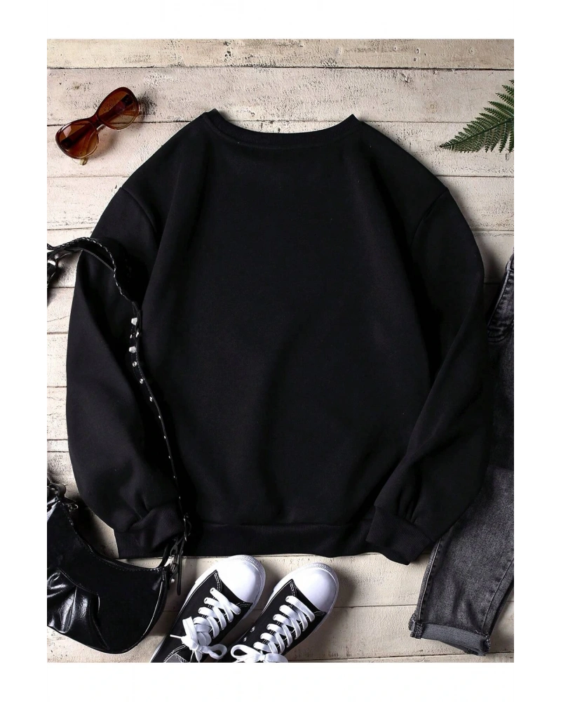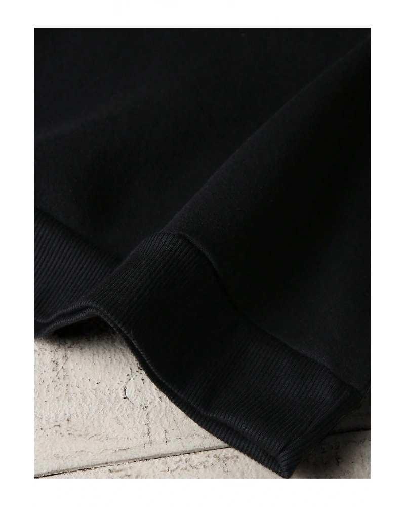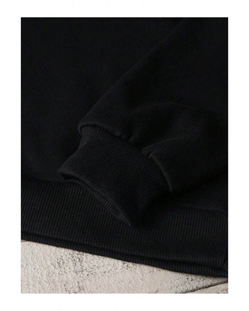 Siyah Yakasız Tüy Baskılı Unisex Sweatshirt