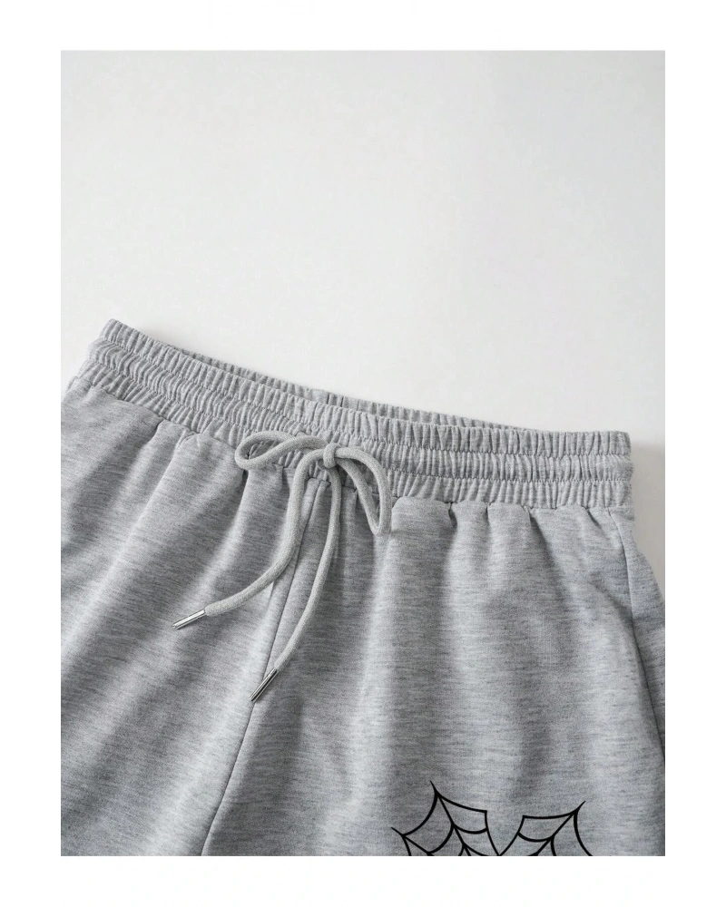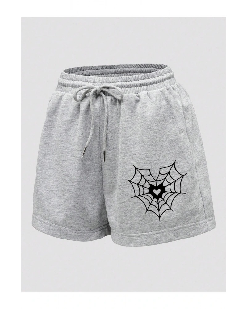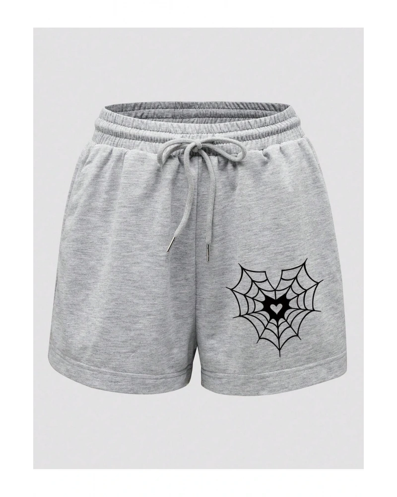 Halloween Spider Web & Heart Print Drawstring Waist Şort