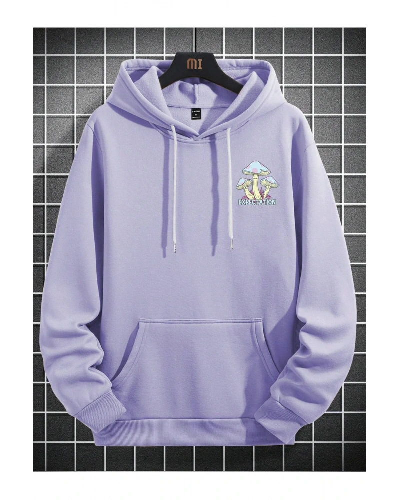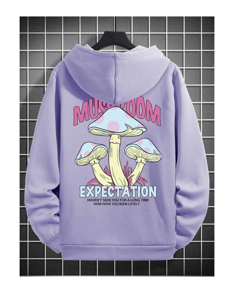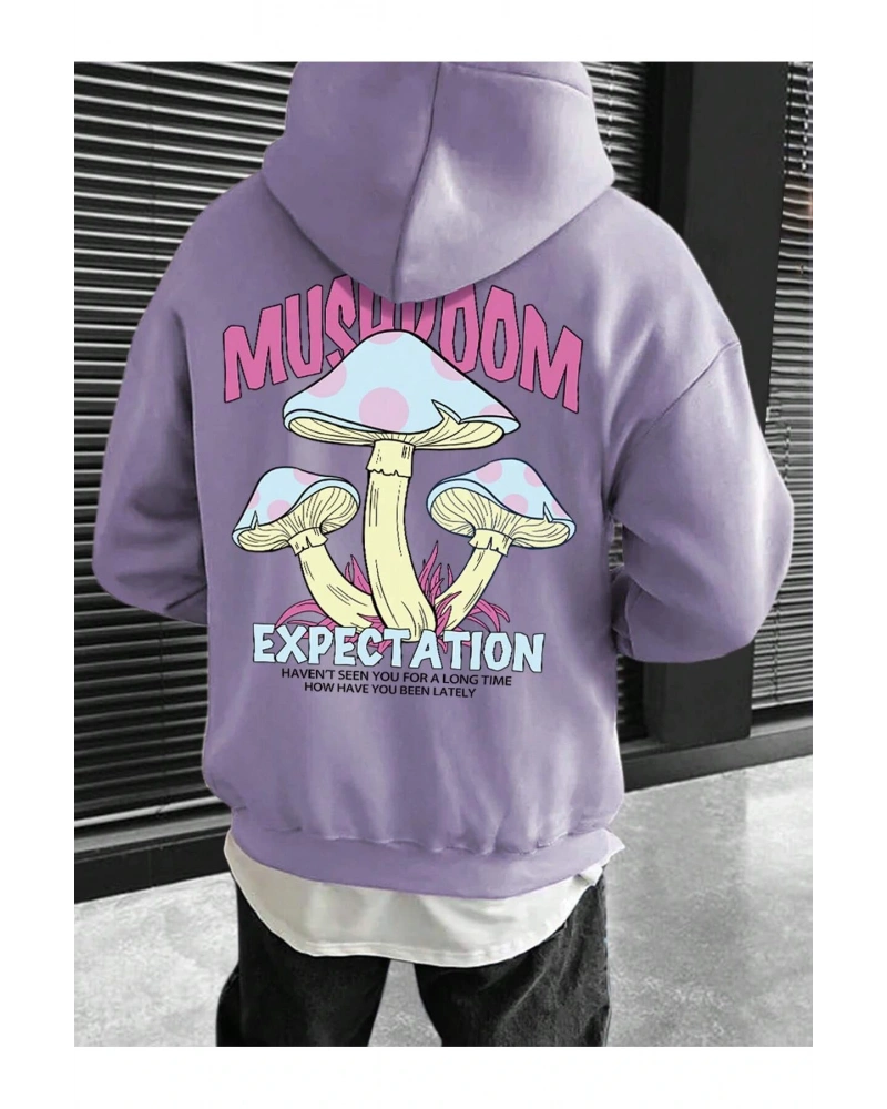 Harajuka Sokak Mantar ve Slogan Grafikli Düşük Omuz Mor