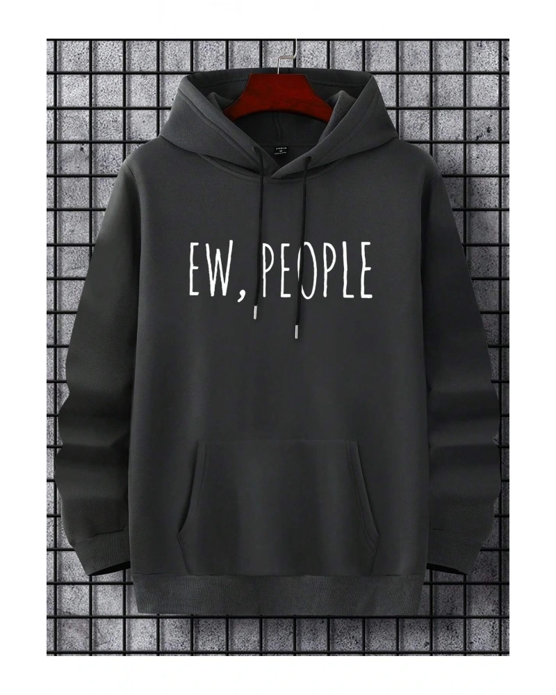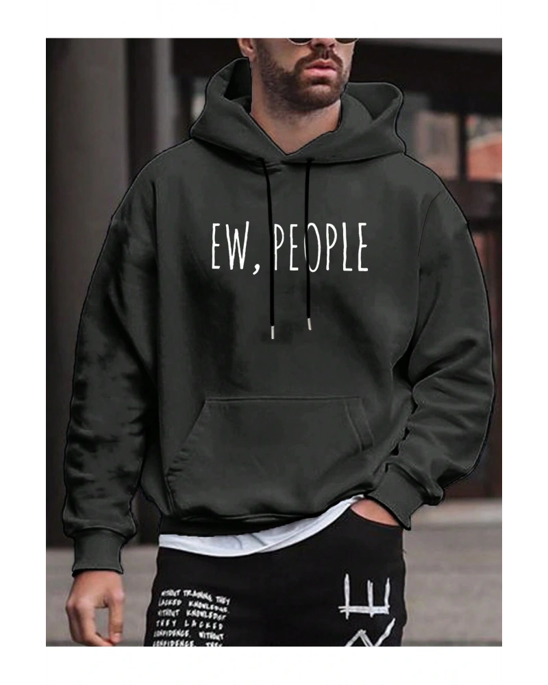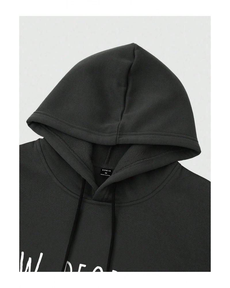 Harajuka Sokakt Manfinity Homme Erkekler Mektup Grafik Kanguru Cep Gri