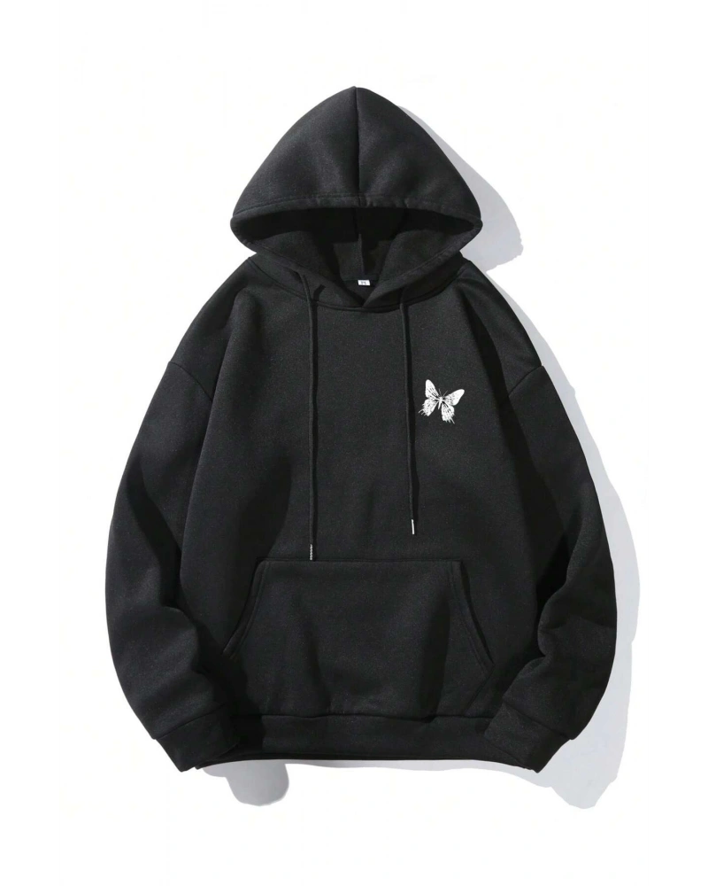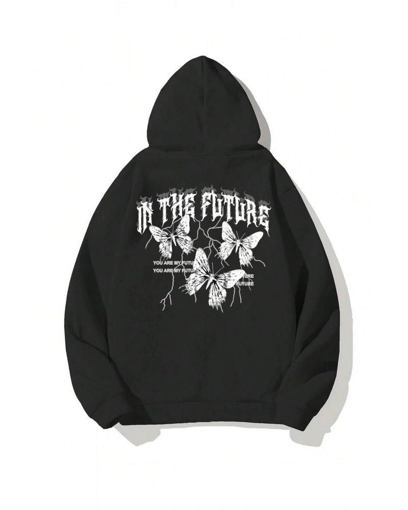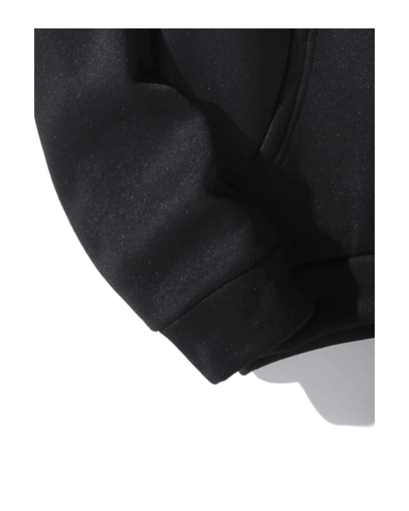 Siyah Yakasız Tüy Baskılı Unisex Sweatshirt