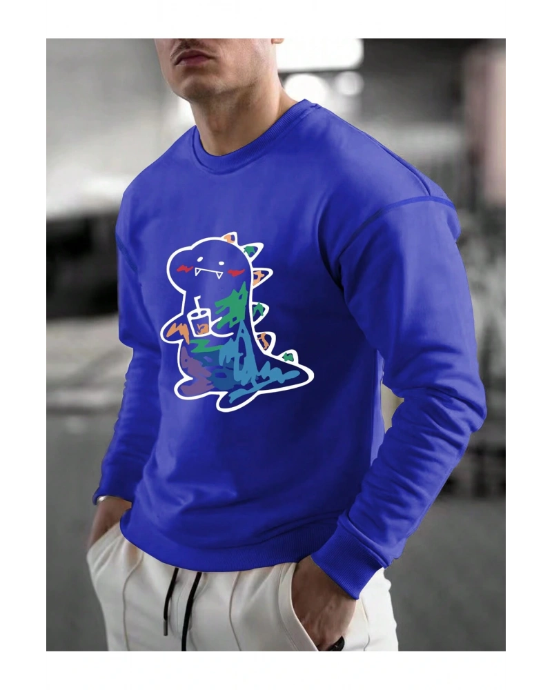 Karikatür & Harf Grafik Düşük Omuz Oversize Sweat Lacivert