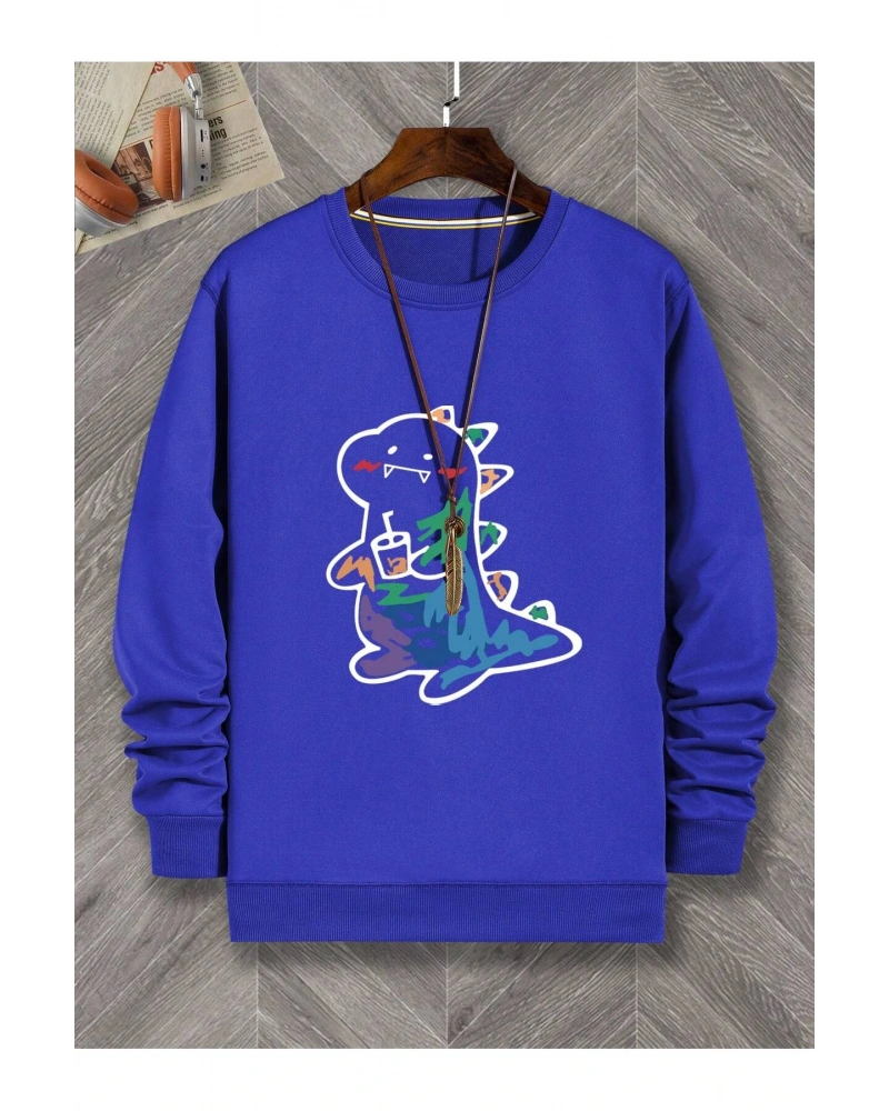 Siyah Yakasız Tüy Baskılı Unisex Sweatshirt