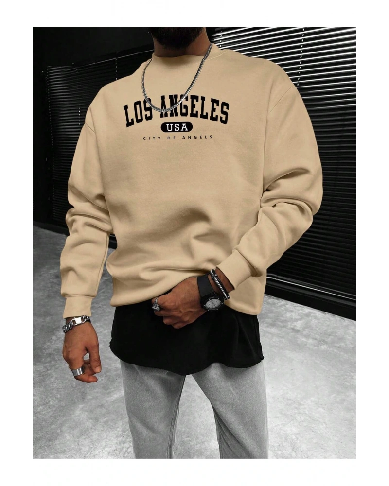 Los Angeles baskılı Üç İplik ünisex oversize Sweatshirt Füme