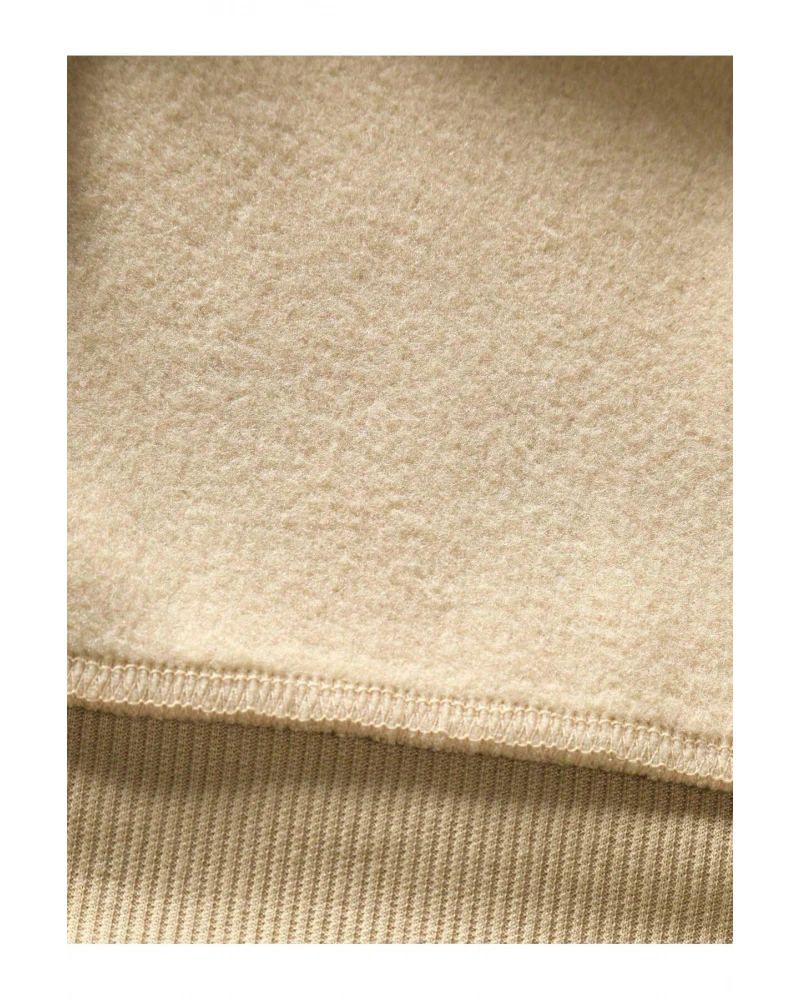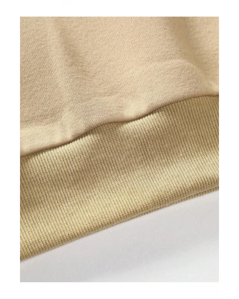 Sloganlı ve Yıldız Desenli Düşük Omuzlu Oversize Sweat Bej