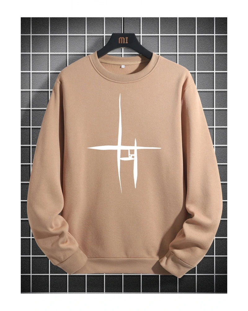 Karikatür & Harf Grafikli Damla Omuzlu Kazak Bej