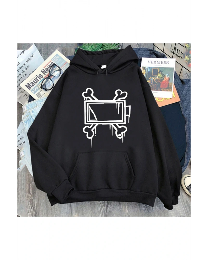 YQYQ----- Oversize Kulaklık Genç Kız Siyah Beyaz Tasarım Baskılı Unisex Kapüşonlu Sweatshirt Hoodie
