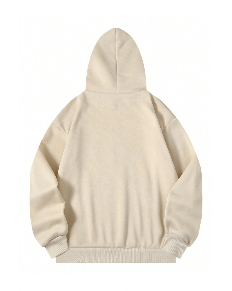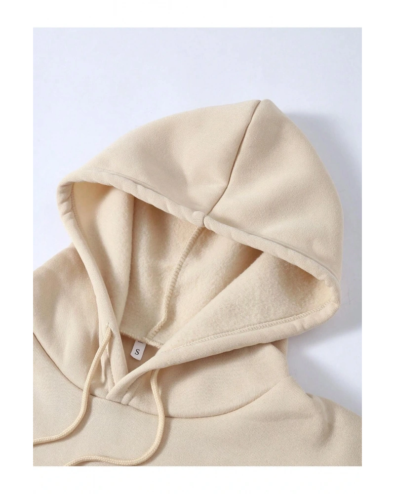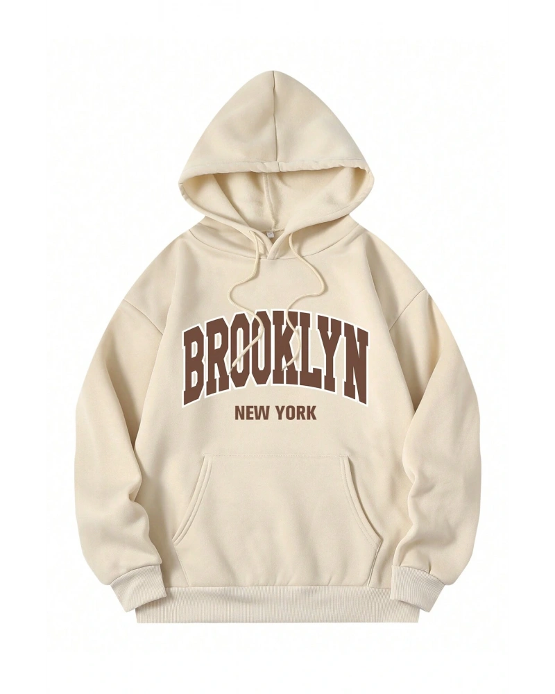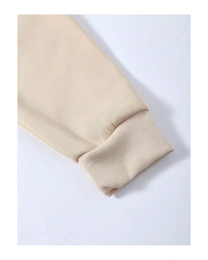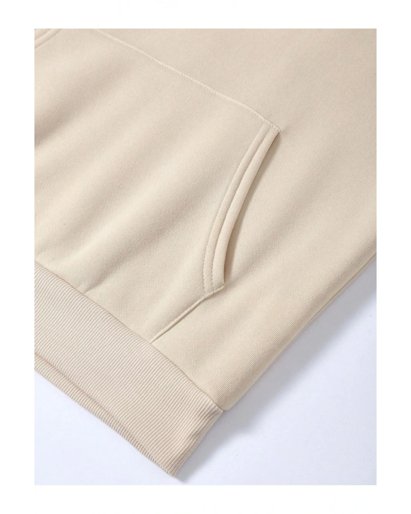 Harf Grafik Kanguru Cepli İpli Kapüşonlu Üst Bej