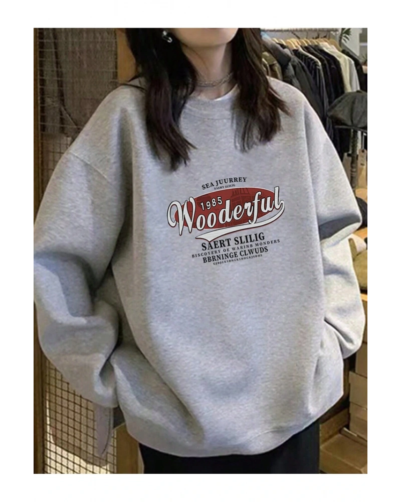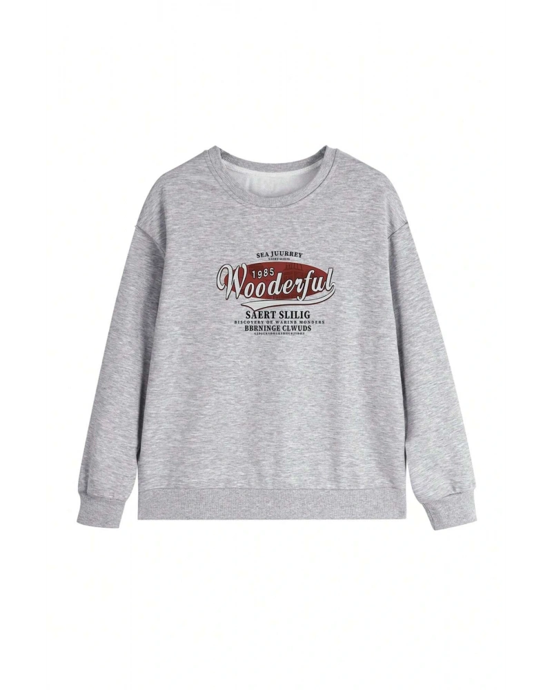 Harfli Grafik Düşük Omuz Oversize Sweat Gri