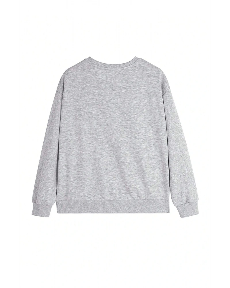 Grafik Düşük Omuz Oversize Sweat Gri