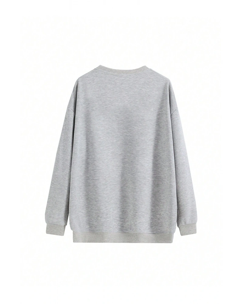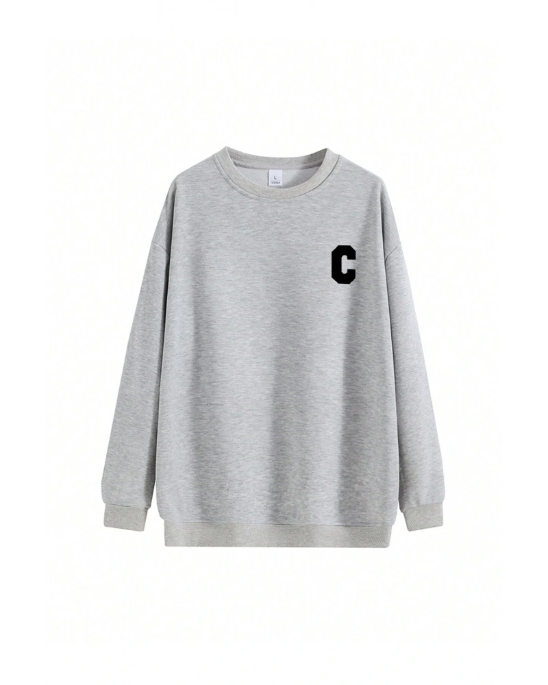 Harfli Grafik Düşük Omuz Oversize Sweat Gri