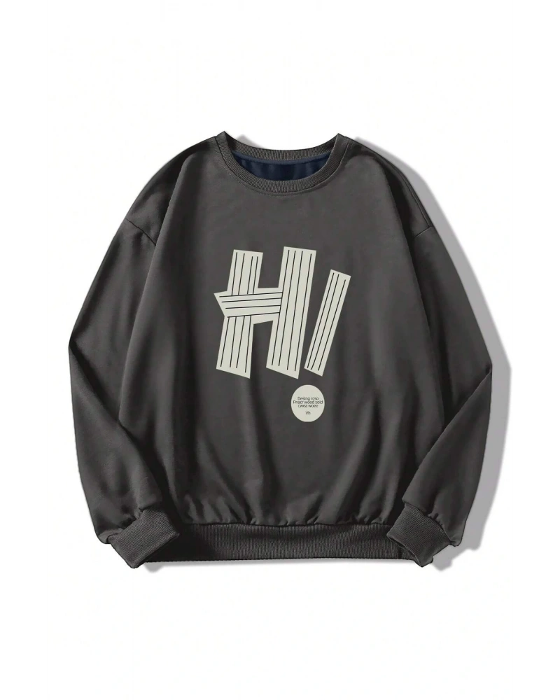 Harfli Grafik Düşük Omuz Oversize Sweat Gri
