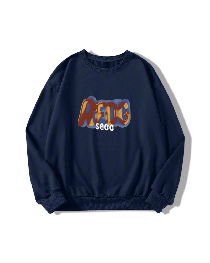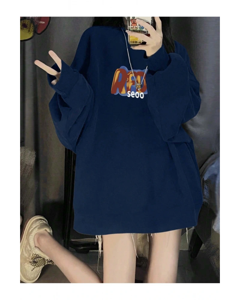 Harfli Grafik Düşük Omuz Oversize Sweat Lacivert