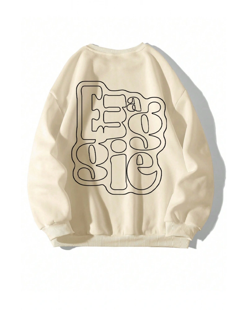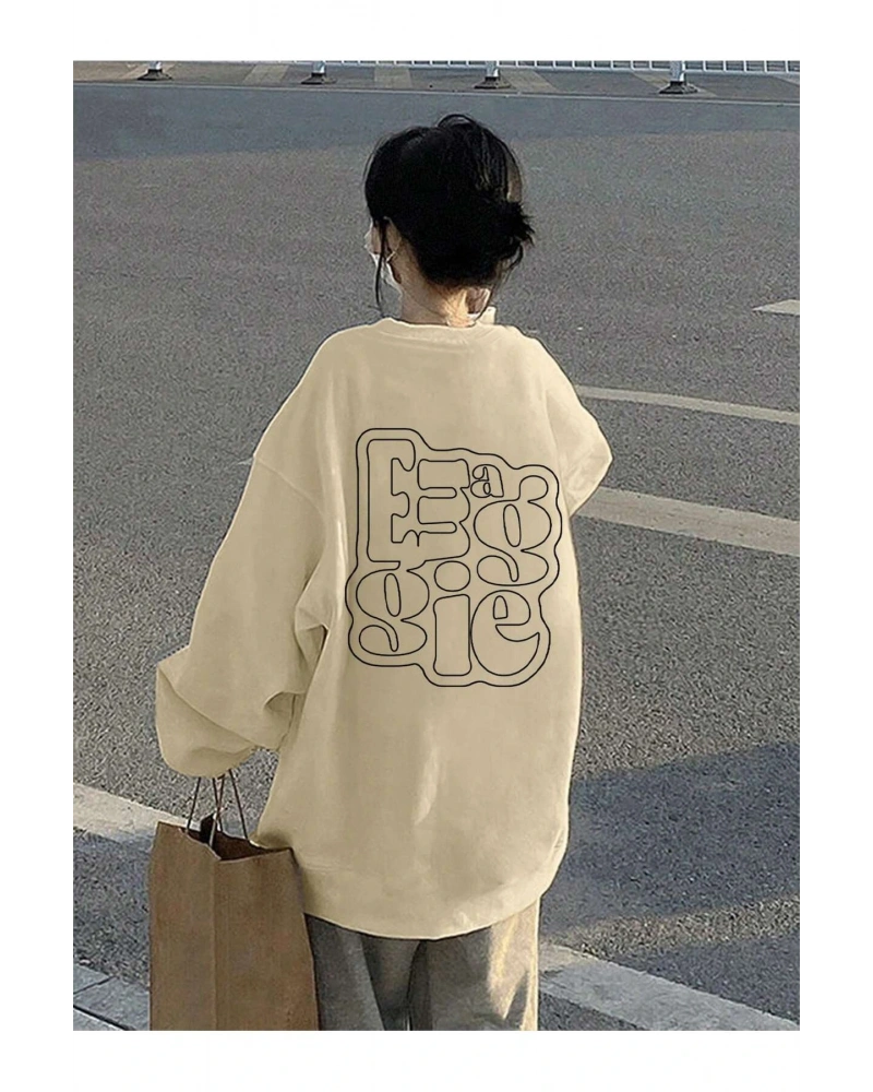Harfli Grafik Düşük Sweat Bej