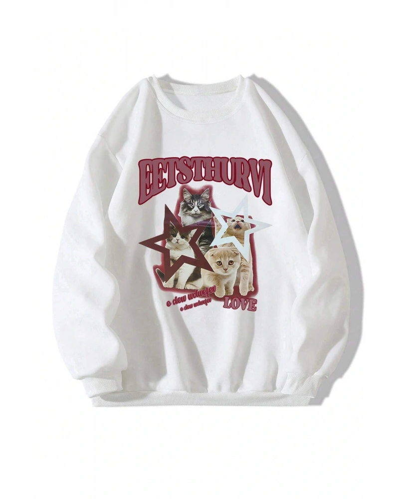 Manfinity EMRG Cartoon And Slogan Graphic Sweatshirt Beyaz