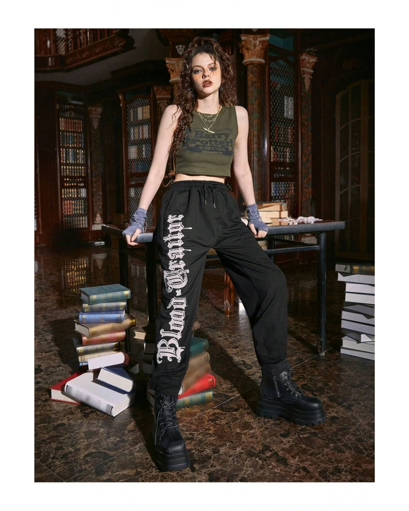 Sporsity Letter Graphic Drawstring Waist Eşofman Altı