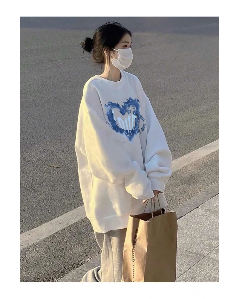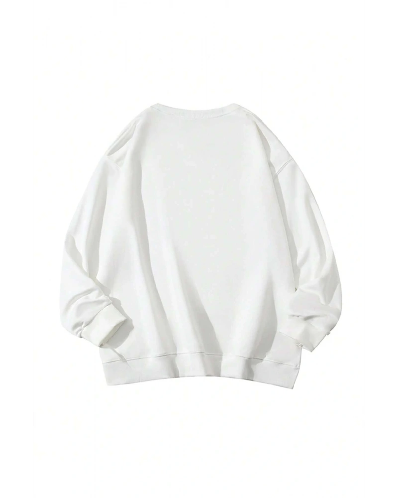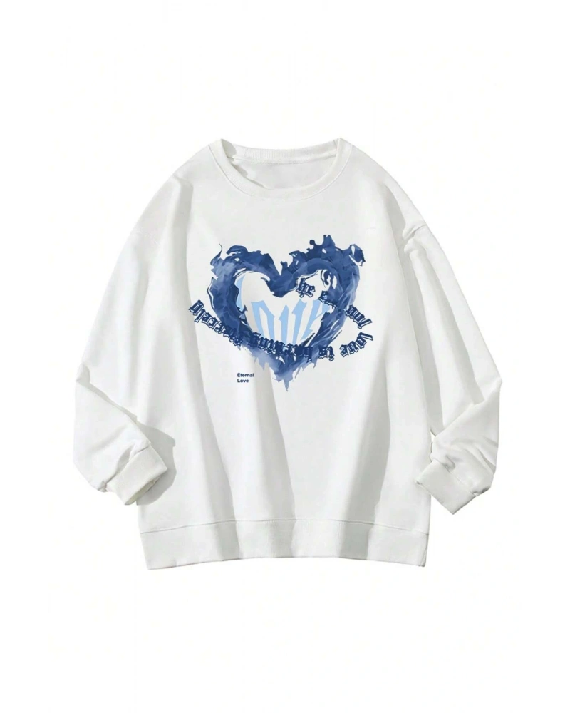 Heart Pattern Drop Shoulder Pullover Beyaz