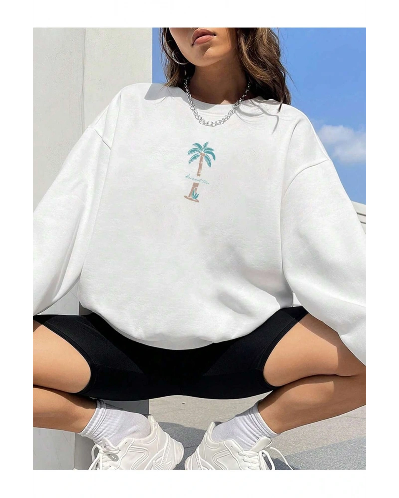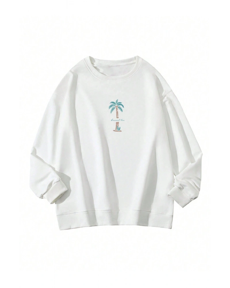Hindistan Cevizi Ağacı Desenli Sweat Beyaz