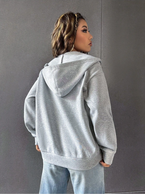 3 Iplik Şardonlu Fermuarlı Kapüşonlu Sweatshirt Gri 3 Lü Kombin
