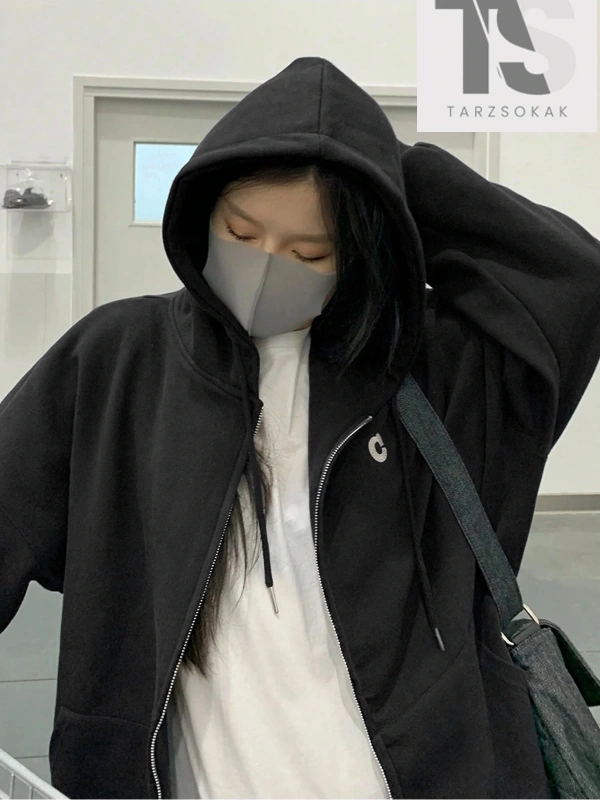 Özel Tasarım Kapüşonlu Tam Fermuarlı Süper Oversize Tam Kışlık Kadın Ceket-sweatshı Siyah