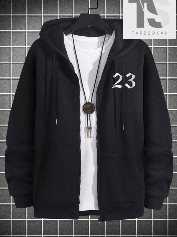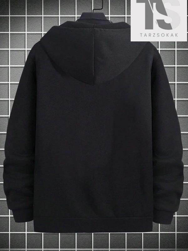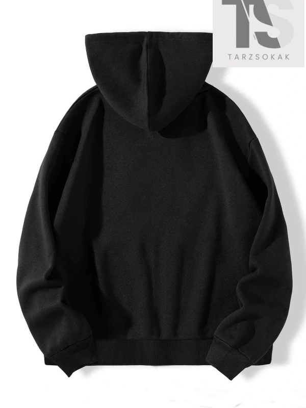 Siyah Kapüşonlu Fermuarlı Sweatshirt