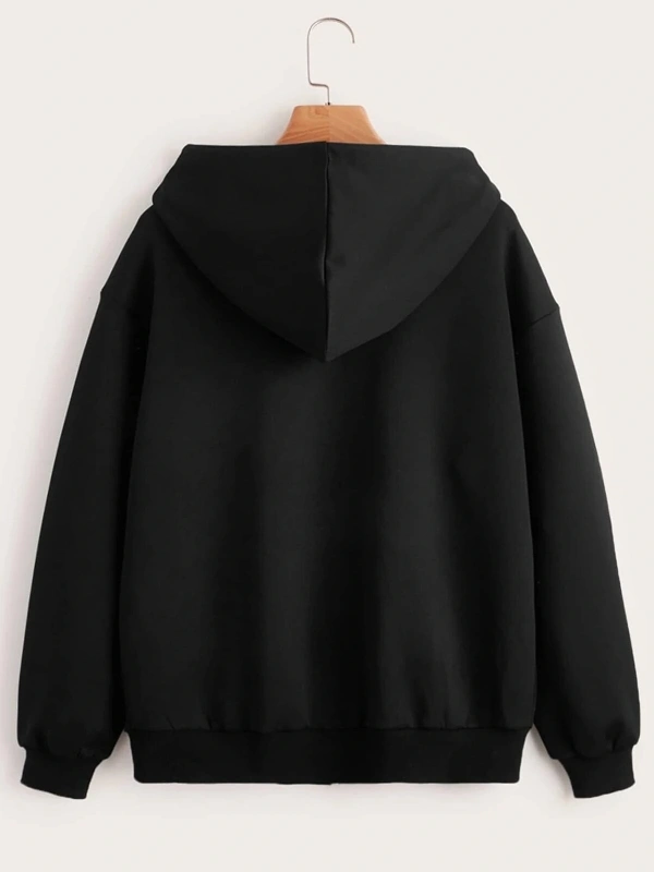 Özel Tasarım Kapüşonlu Tam Fermuarlı Süper Oversize Tam Kışlık Kadın Ceket-sweatshı Siyah