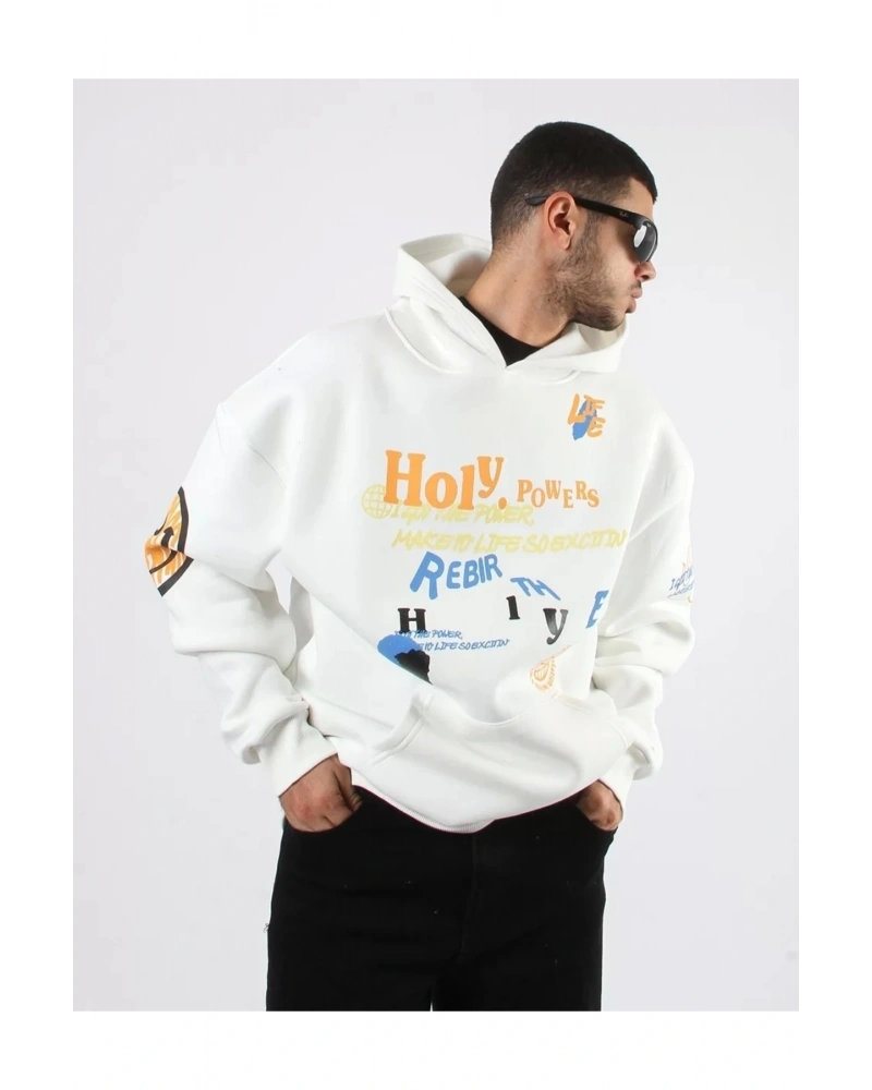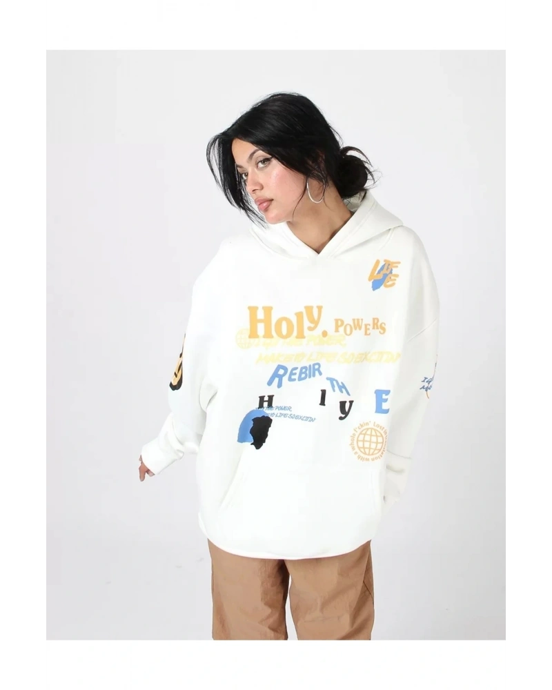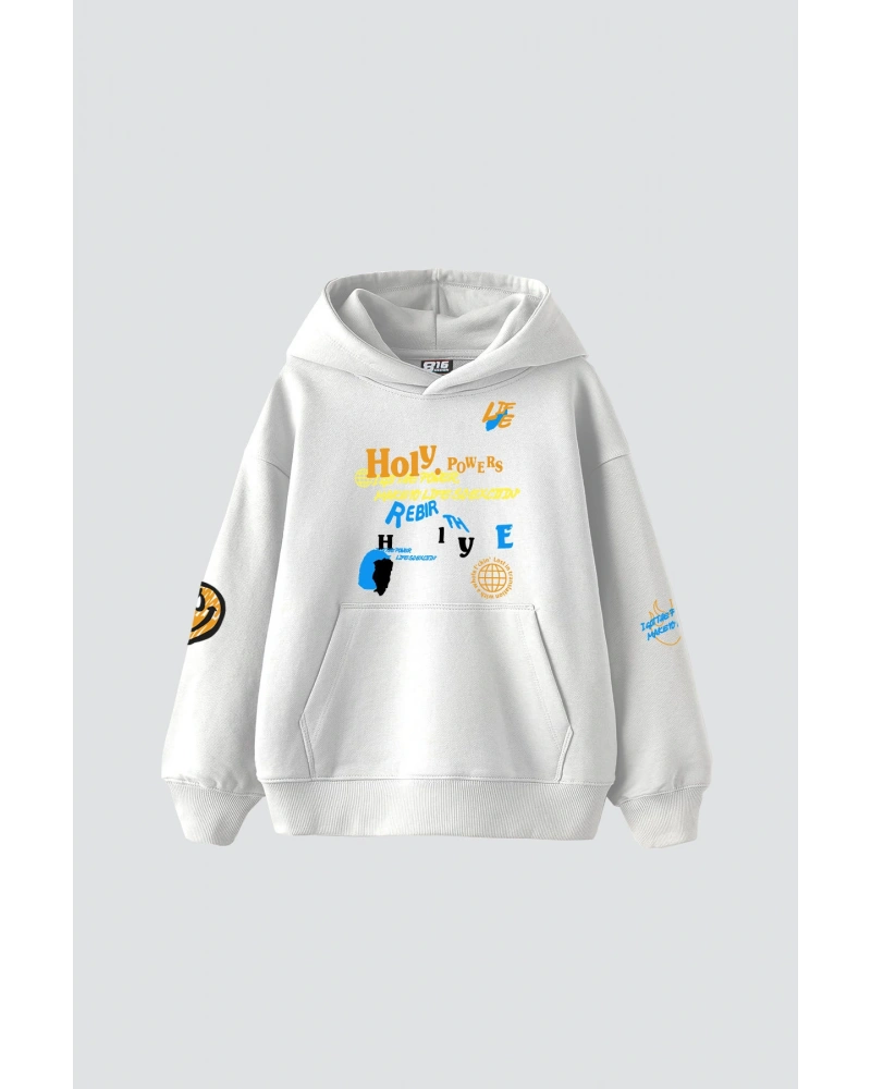 Holy Powers Beyaz Oversize Unisex Kapüşonlu