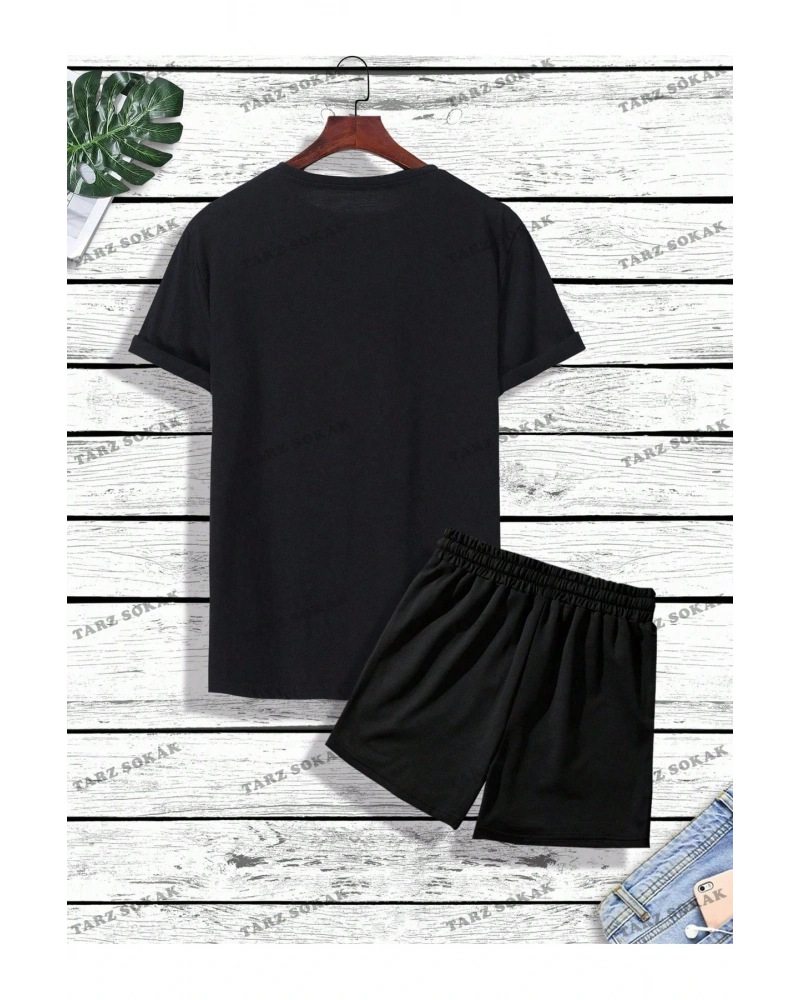 Erkek Günlük Seyahat Kısa Kollu Yuvarlak Yaka Tişört ve Şort Takımı