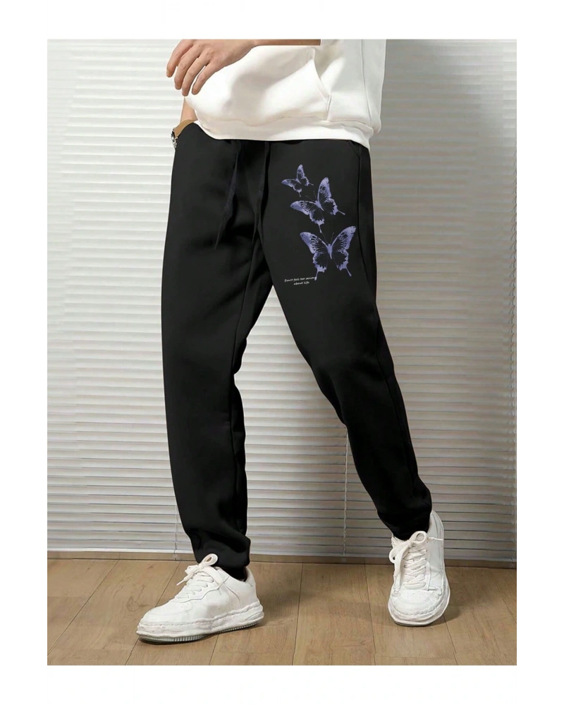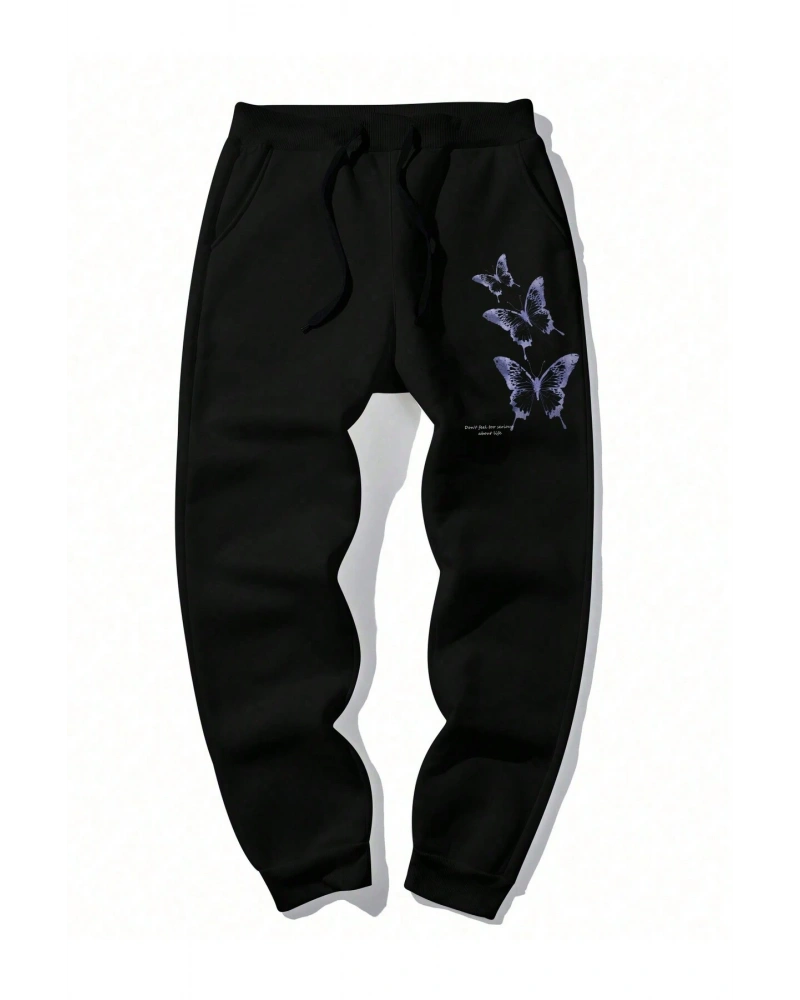 Hypemode Butterfly & Slogan Graphic Drawstring Waist Eşofman Altı
