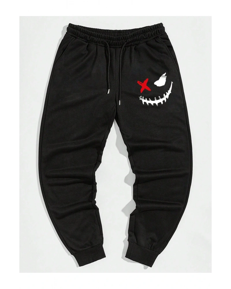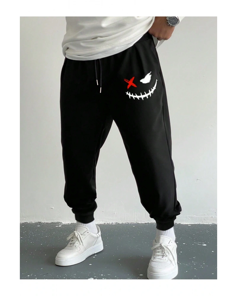 Cartoon Face & Slogan Graphic Drawstring Waist Eşofman Altı