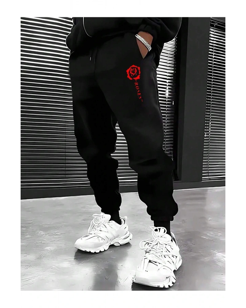 Lion Company Baskılı Siyah Paçası Lastikli Eşofman Unisex ESF01