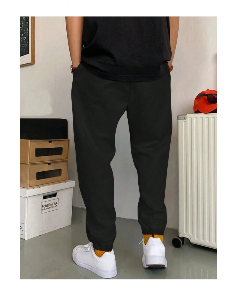 Erkek Yazlık Eşofman Altı Dar Paça Jogger Siyah Pamuklu Kumaş RLX044513