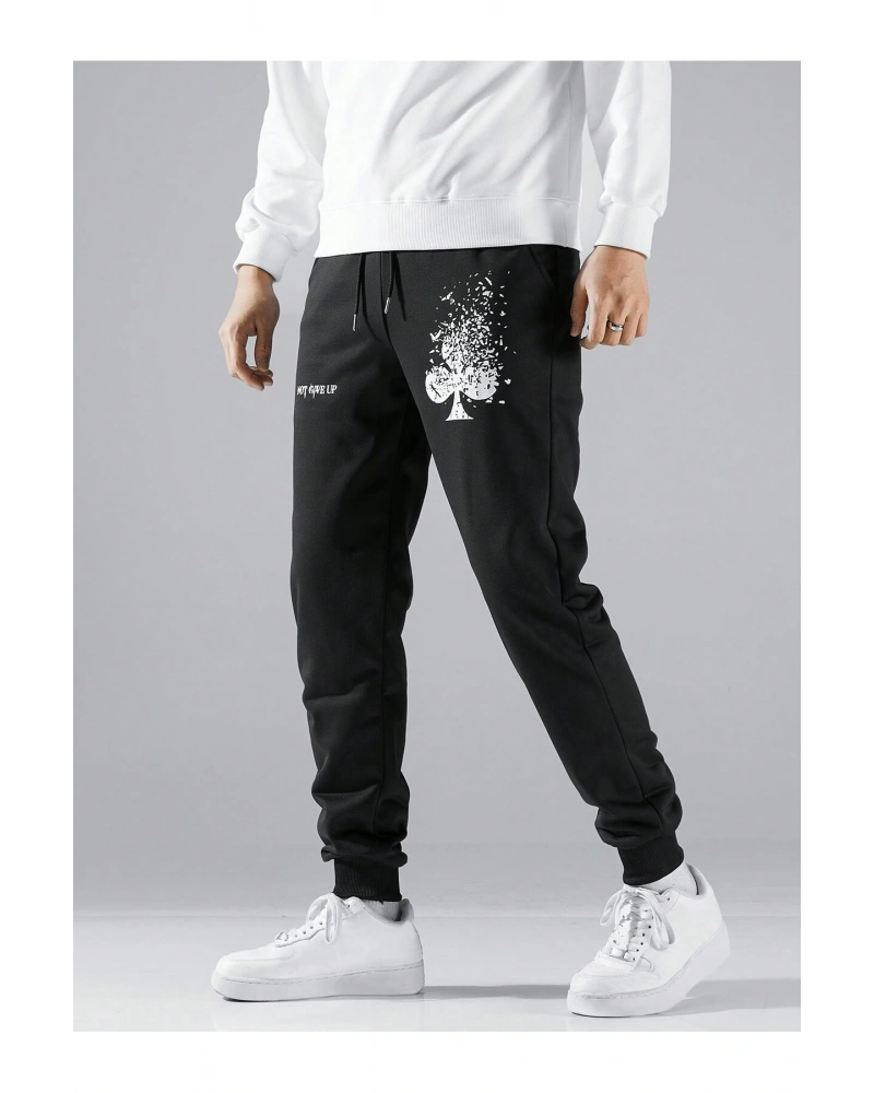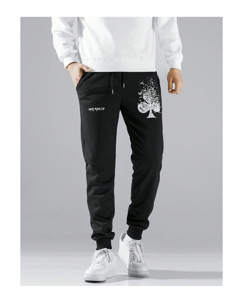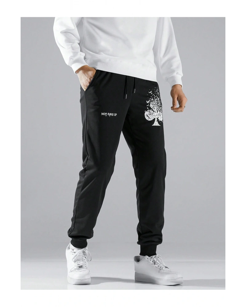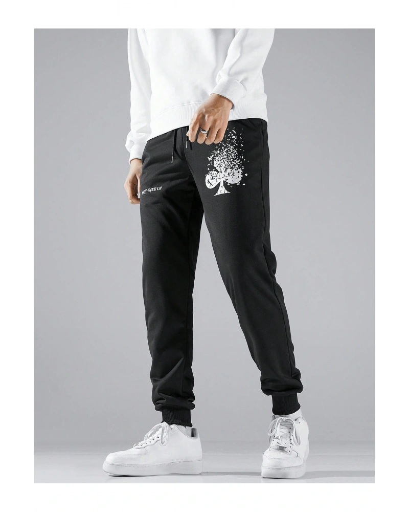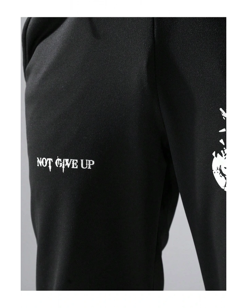 Lion Company Baskılı Siyah Paçası Lastikli Eşofman Unisex ESF01