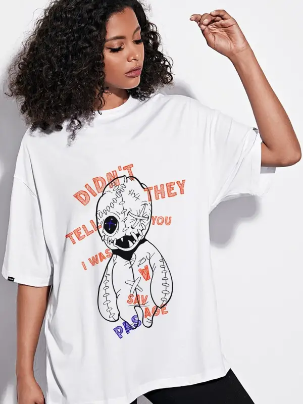 Oversize Savage Baskılı Beyaz Tshirt NRAGE198