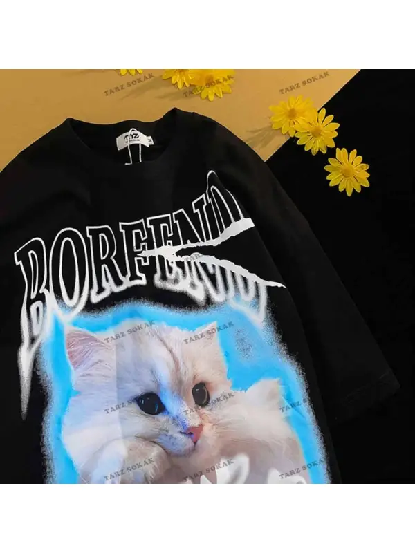 Oversize Françoise Hardy Baskılı Siyah Tshirt NRAGE200