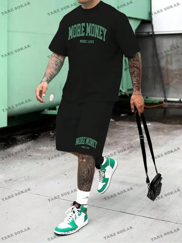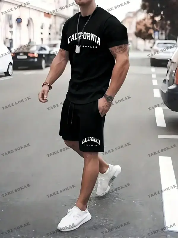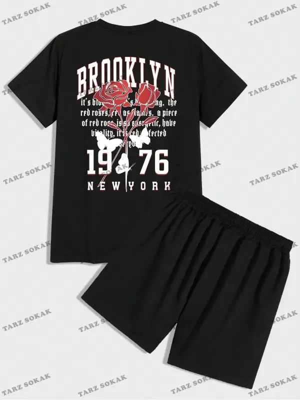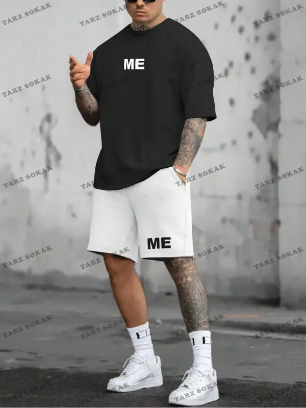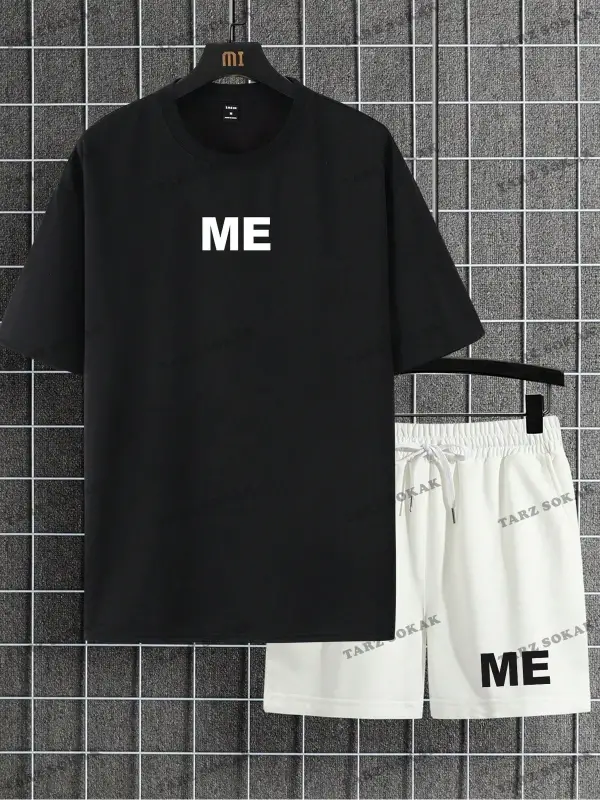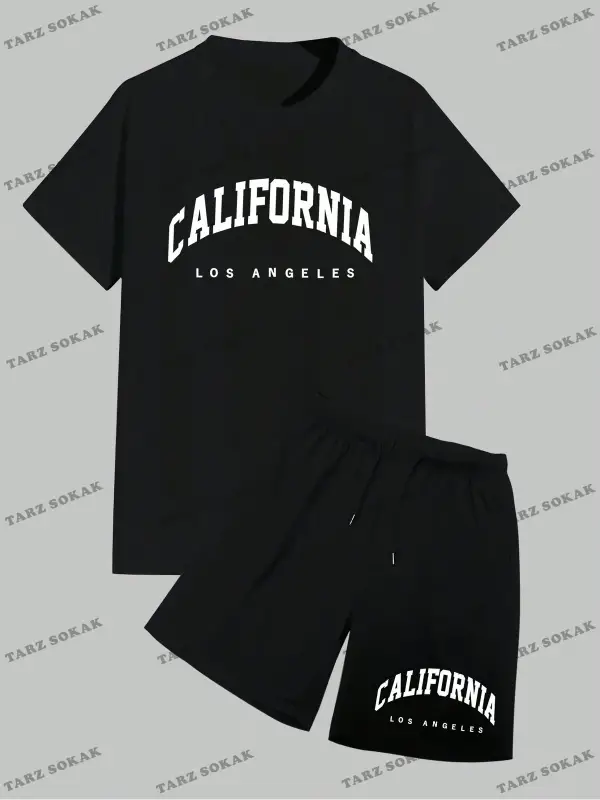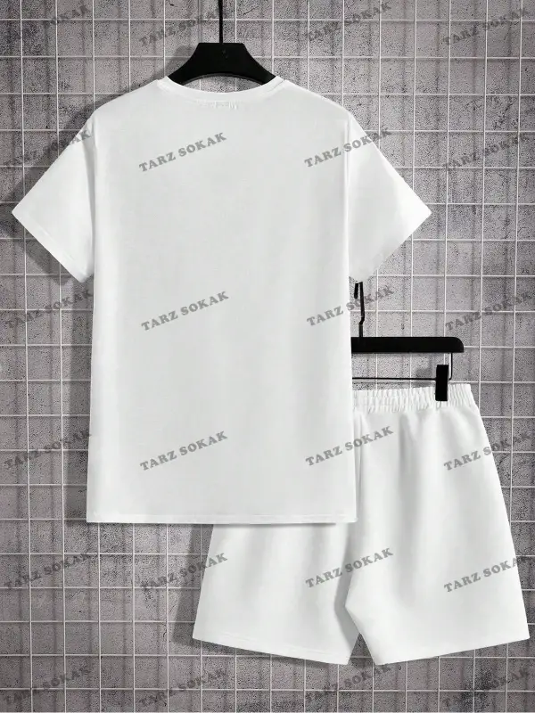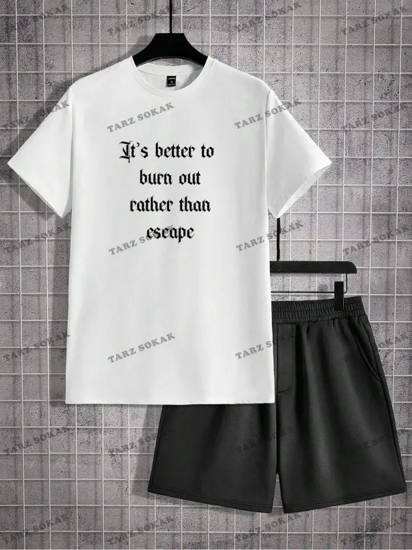 Erkek Slogan Baskılı Kısa Kollu Tişört Ve Şort Takım
