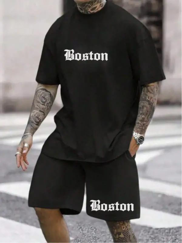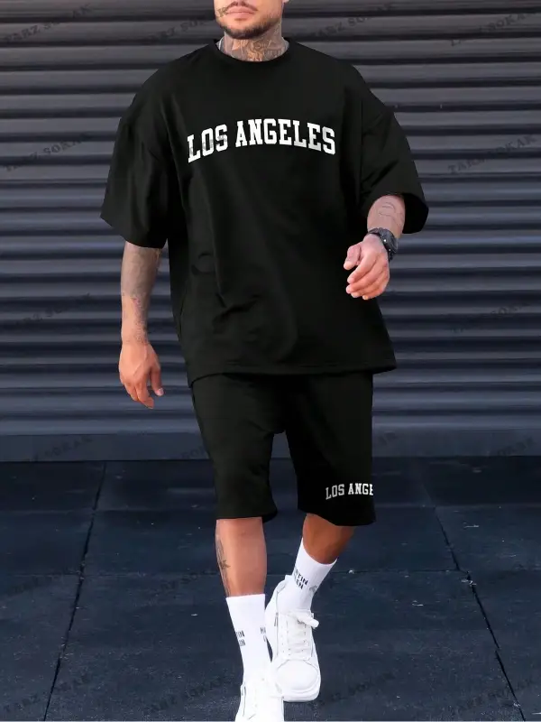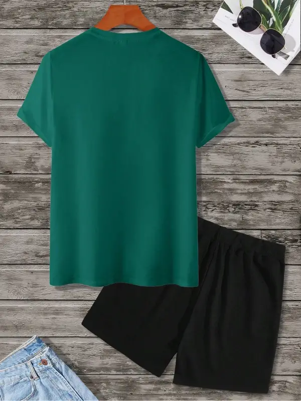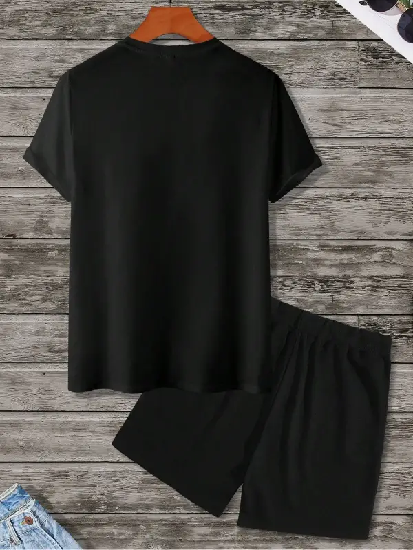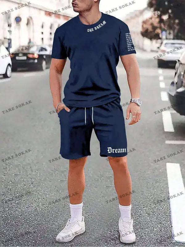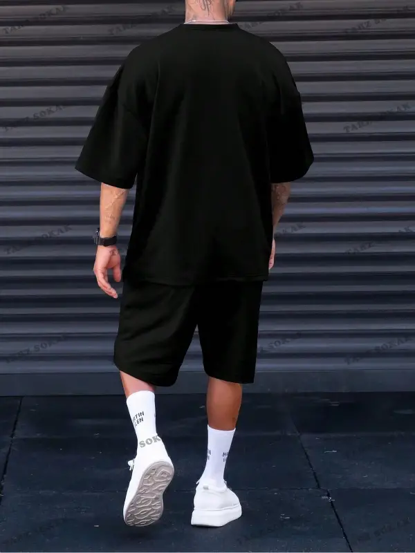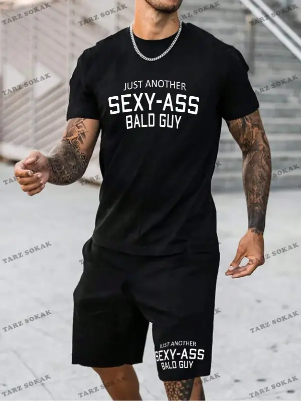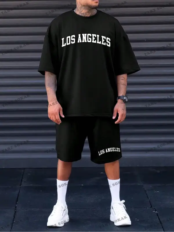 Erkek Slogan Baskılı Kısa Kollu Tişört Ve Şort Takım