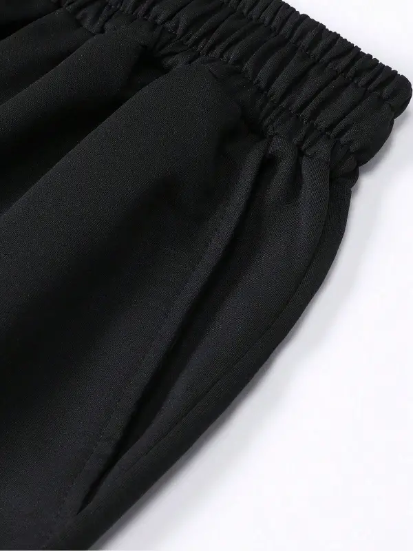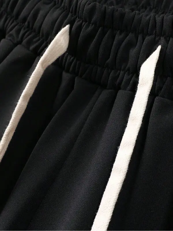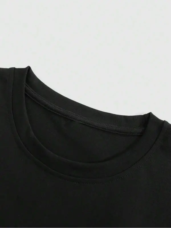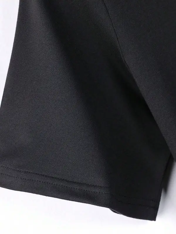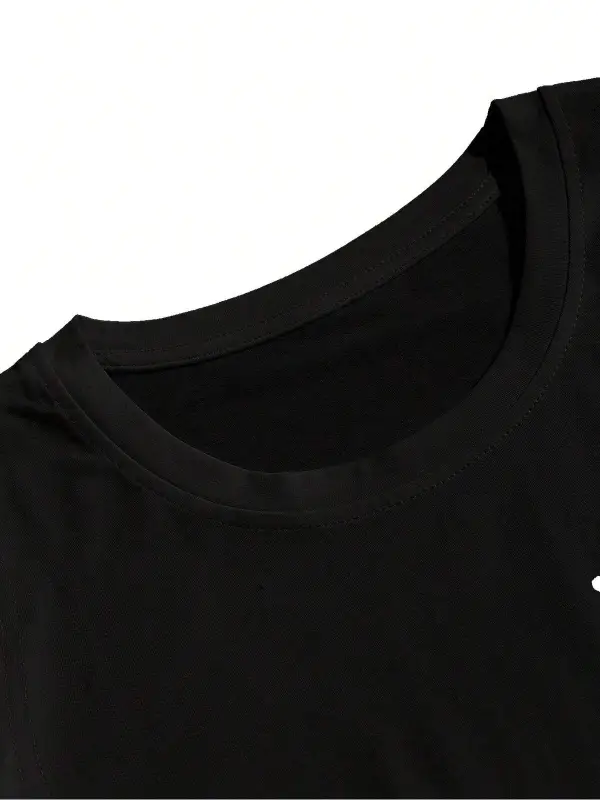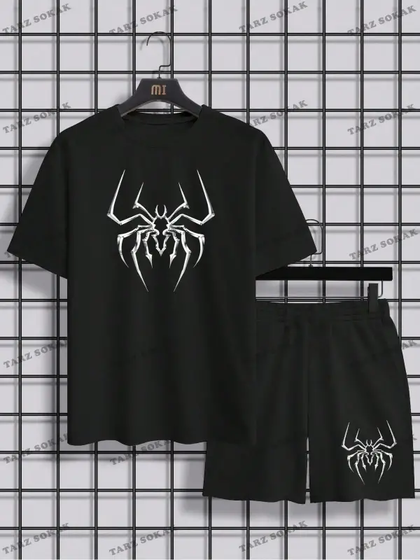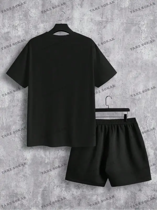EMRG Siyah Örme Erkek Uzaylı Mektup Baskılı Tişört ve Şort İki Parçalı Set