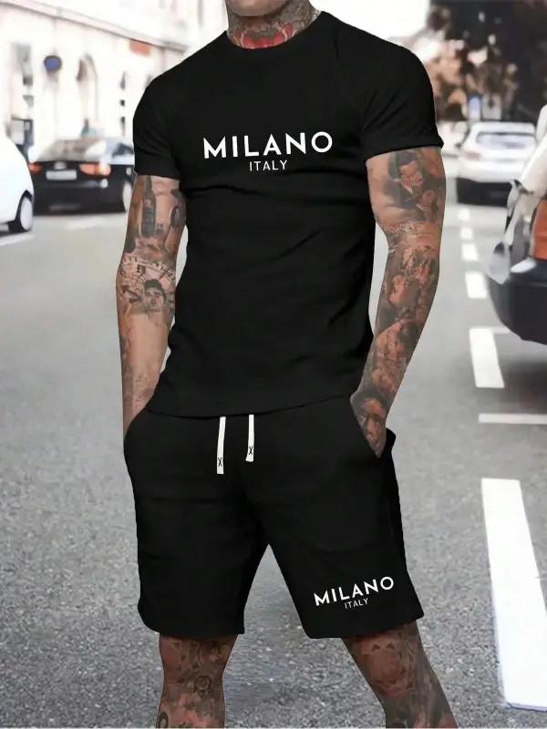 Erkek Rahat Yaz Takımı - Kısa Kollu Harf ve Grafik Baskı No Tişört Ve Şort Takımı