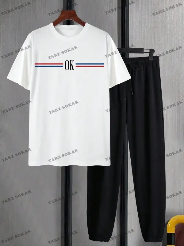 Homme Erkek Mektup Baskı Kısa Kollu Tişört Ve Uzun Pantolon İki Parçalı Set