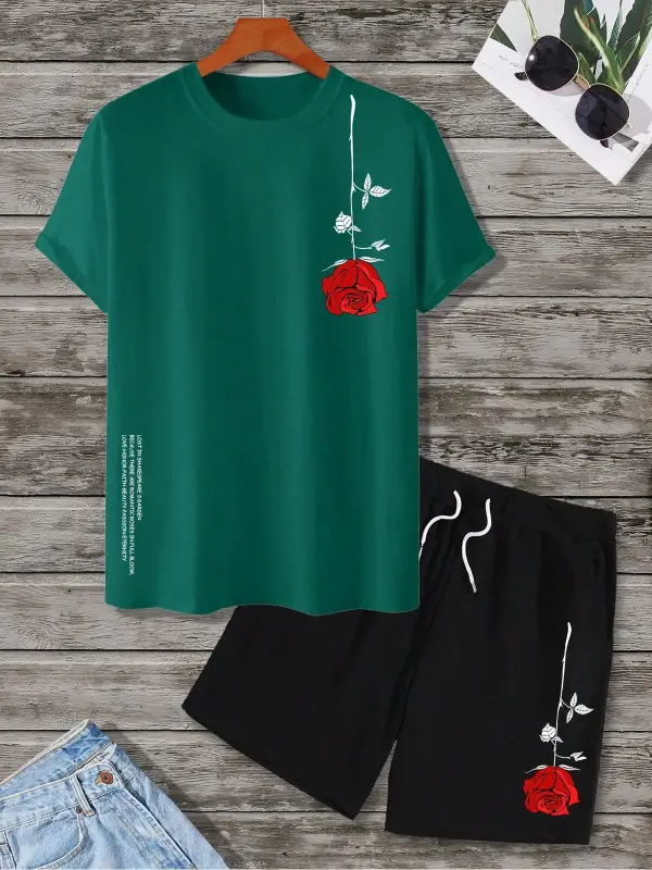 Manfinity Homme 2 Adet/Takım Erkek Çiçek Desenli Tişört Ve Şort Takımı